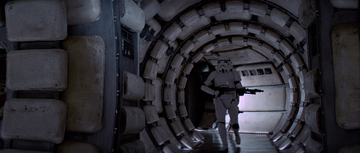 Stormtrooper in Cockpit access corridor - note the tube wall segments